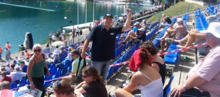 Unsere Anfahrt führt uns jeden Tag von Österreich nach Slowenien. Die knapp 60 km sind kein Problem. Wir fahren durch das Karawankentunnel 7864 m lang und jede Durchfahrt kostet 6,50 E Maut. Das Wetter spielte wieder prächtig mit und mit der Halbzeitbilanz 2x Gold und 1x Silber ist unser Chefverbandtrainer sicherlich nicht unzufrieden. Unser Doppelvierer mit Timm, Karl und Philipp fuhr sicher ins Finale und wird uns sicher morgen ein spannendes Finale bieten. Lena Müller aus Duisburg betreut von Brigitte Bielig holte eine doch überraschende Bronzemedaille. Im Achter der Frauen wurde es uns nach der Platzierung im kleinen Finale endgültig klar, wie schwer die Aufgabe für die Olympiaqualifikation im nächsten Jahr wird. Mit etwas Erstaunen haben wir festgestellt, das die Wettkämpfe sehr gut zum Freitag besucht waren.