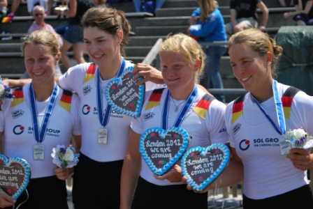 Insgesamt holte sich der DRV in den 14 olympischen Bootsklassen eine Gold-, zwei Silber- und zwei Bronzemedaillen. Der Frauen-Doppelvierer mit unserer Annekatrin Thiele aus Leipzig und der Männer-Doppelvierer mit Tim Grohmann und Karl Schulze aus Dresden und Philipp Wende aus Wurzen freuten sich über Silber, der Leichtgewichts-Frauen-Doppelzweier mit Lena Müller und Anja Noske betreut von Brigitte Bielig aus Dresden sowie der Männer-Doppelzweier mit Stephan Krüger und Eric Knittel holten jeweils die Bronzemedaille.