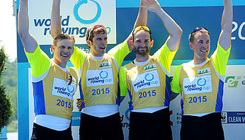 Am Ende war es ein deutlicher und überlegen heraus geruderter Sieg im Frauen-Doppelvierer. Das DRV Team hatte auf der Ziellinie sogar Wasser zwischen sich und die Verfolgerinnen legen können. Die amtierenden Europameisterinnen Annekatrin Thiele, Carina Bähr, Marie-Catherine Arnold und Lisa Schmidla machten früh klar, dass Gold an sie gehen wird. Die Polinnen blieben lange dran, mussten sich dann aber den USA erwehren, die den Vorsprung der Osteuropäerinnen am Ende auf 0,17 Sekunden verkürzten. Lisa Schmidla: „Wir sind zufrieden. Es war eine wichtige Standortbestimmung, denn zur letzten WM waren wir das einzige europäische Boot und haben den EM-Titel einordnen können. Wir wollten den anderen Teams schon am Start keine Chance lassen und haben das taktische Konzept gut umgesetzt“. Annekatrin Thiele: „Wir haben sehr hart trainiert. Ich freue mich über das Ergebnis. Alle jagen uns. Wir merken, dass sich der Druck erhöht, aber wir hatten heute Spaß und es hat ziemlich gut ausgezahlt.“