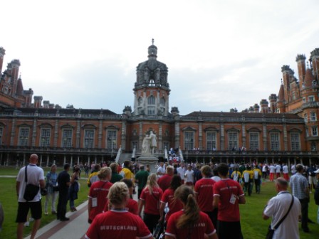 Heute bin ich an der Reihe etwas über unseren Aufenthalt hier in England zu schreiben.Nun sind wir heute ja schon unseren zweiten ganzen Tag hier und hatten auch genügend Zeit die Strecke kennen zu lernen. Nach dem morgendlichen Blutabnehmen und einem sehr leckeren Frühstück (über das Essen hat Debbie ja bereits berichtet 😉 ) ging es dann zur Strecke. Der Wind war heute Morgen zum Glück noch ein wenig verschlafen, so dass wir unsere 3 Runden mit zweimal 100m Strecken gut absolvieren konnten. Auch wurden wir bereits von einer amerikanischen Trainerin verfolgt. Nach einer erholsamen Mittagspause, in einem sehr heißen Zimmer, ging es wiederum an die Strecke. Es wurden noch ein paar Ründchen gedreht, diesmal aber mit stärkerem Wind.Spät am Abend versammelten sich noch einmal alle deutschen Sportler, um über FISA-Regeln und das Verhalten im Wettkampf, falls etwas kaputt geht, informiert zu werden. Nachdem dies geschehen war, sind jetzt auch alle auf ihren Zimmern verschwunden, denn morgen früh geht es wieder 7 Uhr mit dem Bus an die Strecke.
