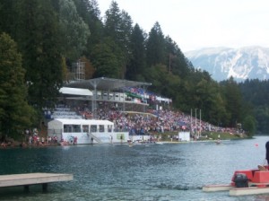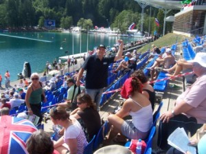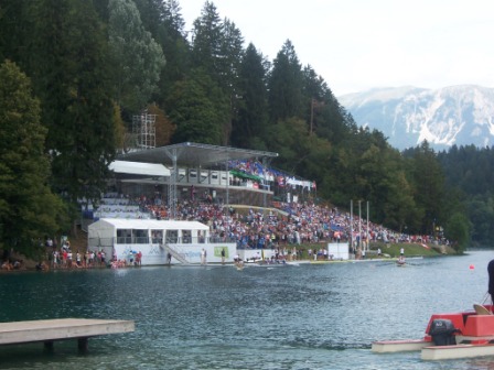 Unsere Anfahrt führt uns jeden Tag von Österreich nach Slowenien. Die knapp 60 km sind kein Problem. Wir fahren durch das Karawankentunnel 7864 m lang und jede Durchfahrt kostet 6,50 E Maut. Das Wetter spielte wieder prächtig mit und mit der Halbzeitbilanz 2x Gold und 1x Silber ist unser Chefverbandtrainer sicherlich nicht unzufrieden. Unser Doppelvierer mit Timm, Karl und Philipp fuhr sicher ins Finale und wird uns sicher morgen ein spannendes Finale bieten. Lena Müller aus Duisburg betreut von Brigitte Bielig holte eine doch überraschende Bronzemedaille. Im Achter der Frauen wurde es uns nach der Platzierung im kleinen Finale endgültig klar, wie schwer die Aufgabe für die Olympiaqualifikation im nächsten Jahr wird. Mit etwas Erstaunen haben wir festgestellt, das die Wettkämpfe sehr gut zum Freitag besucht waren.