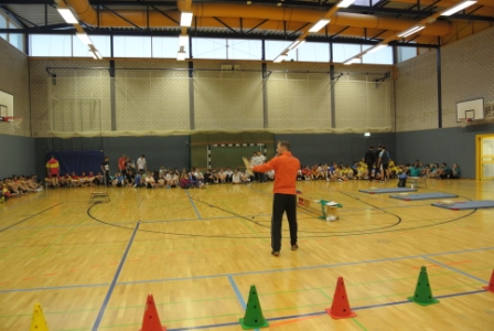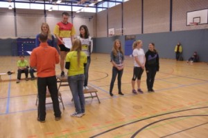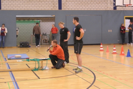 Noch schnell die 14 Riegen eingeteilt – Start-Gong – Stoppuhr, Bandmaß und Stift zur Hand … und los ging es.