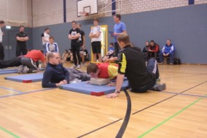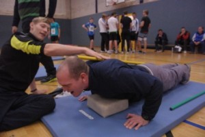 Der Kastenbumerang-Test in der gepolsterten Judohalle konnte ohne große blaue Flecken an den Knien absolviert werden.