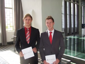Nach kurzen wohltuenden Ansprachen der Ministerin für Sport Uta Schäfer und weiteren Persönlichkeiten erfolgten die Dankesworte der Sportler. Kai und Ole waren die Ausgewählten und beide haben das hervorragend gelöst.