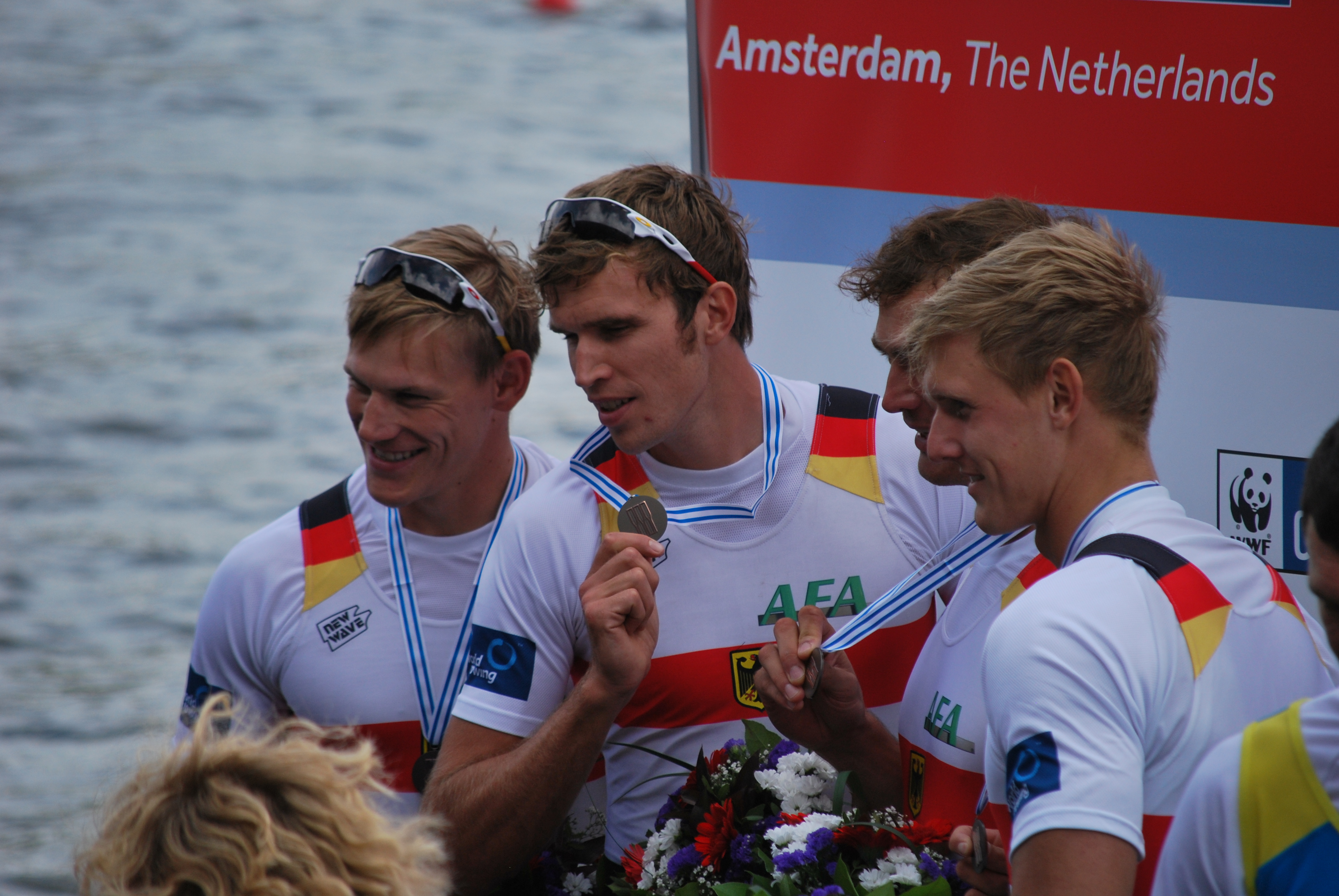 Der Deutsche Männer-Doppelvierer mit Philipp Wende, Tim Großmann, Kai Fuhrmann und Karl Schulze kann sich nach einem packenden Rennen über Bronze freuen. Während sich die Ukraine und Großbritannien schnell von den anderen vier Booten absetzen konnten, entbrannte zwischen Deutschland und China der Kampf um den Bronzerang, in den sich auch Estland immer wieder einmischte. Während die Ukraine denkbar knapp vor den Großbritannien ins Ziel kam, konnte sich das deutsche Quartett knapp vor China den Bronzerang sichern, dahinter Estland und die Schweiz.