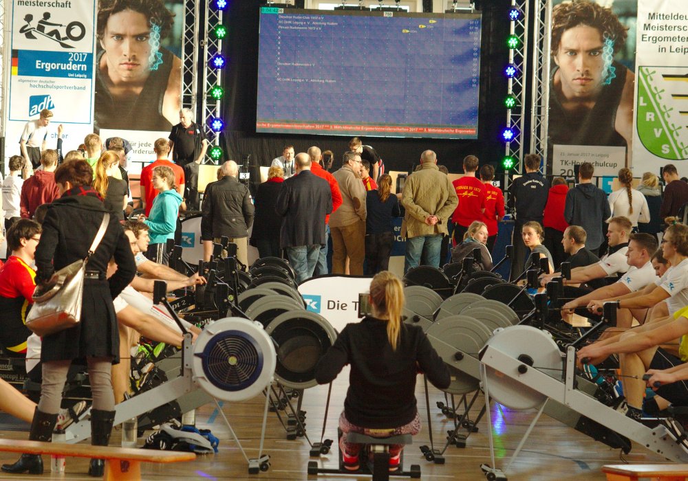 Unter dem Dach der 3. Mitteldeutschen Ergometermeisterschaft versammelten sich auch Studenten von Hochschulen und Universitäten. um am TK-Hochschulcup und an den ADH-Hochschulmeisterschaften teilzunehmen. Auch traten drei Achter-Mannschaften im RBL-Wintersprint gegeneinander an und prüften sich hinsichtlich ihrer Ergometer-Sprintfähigkeit.