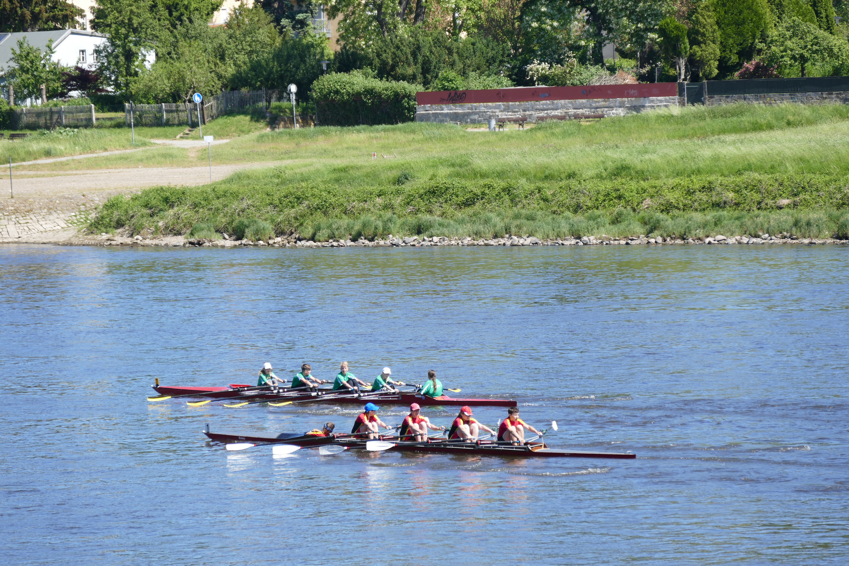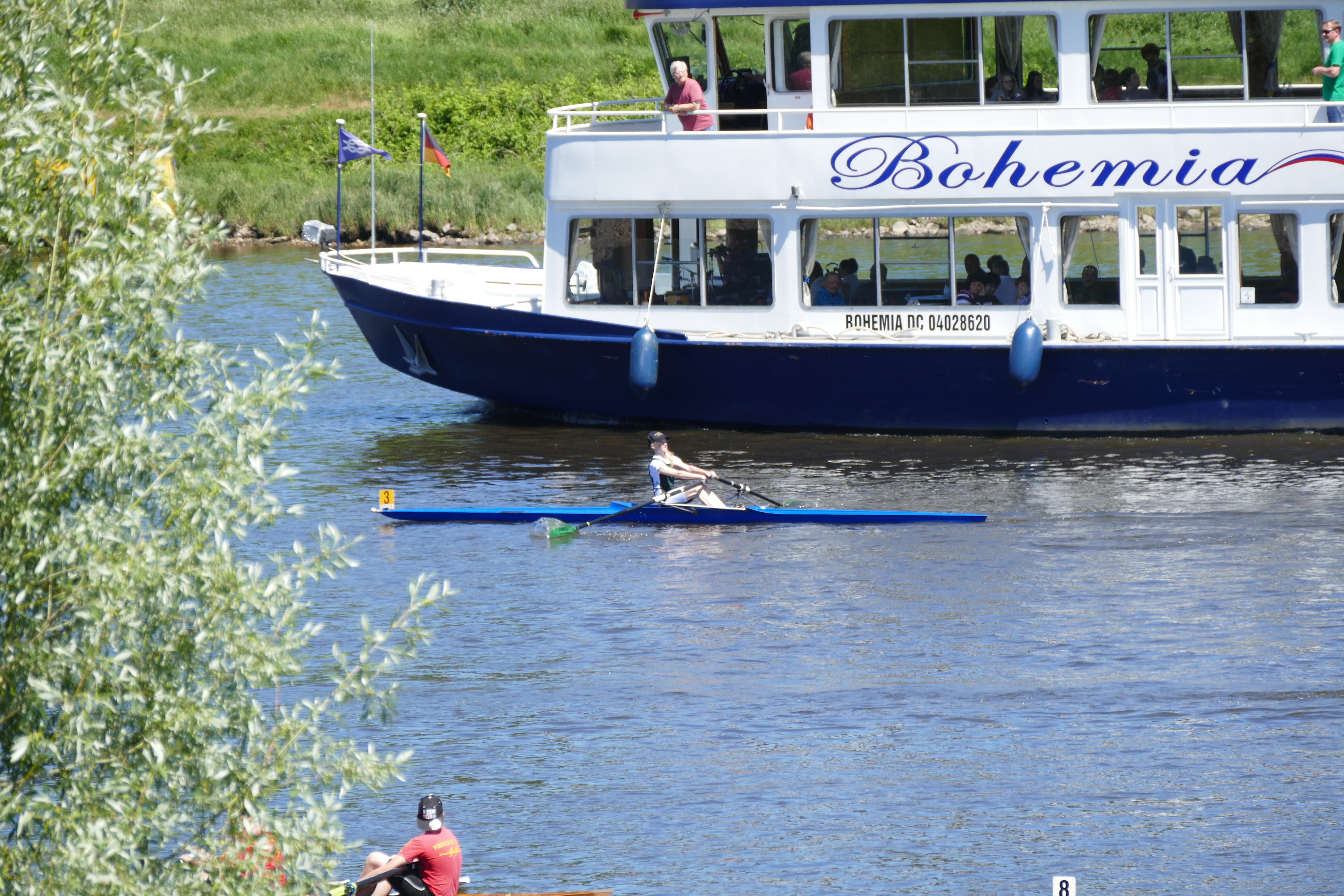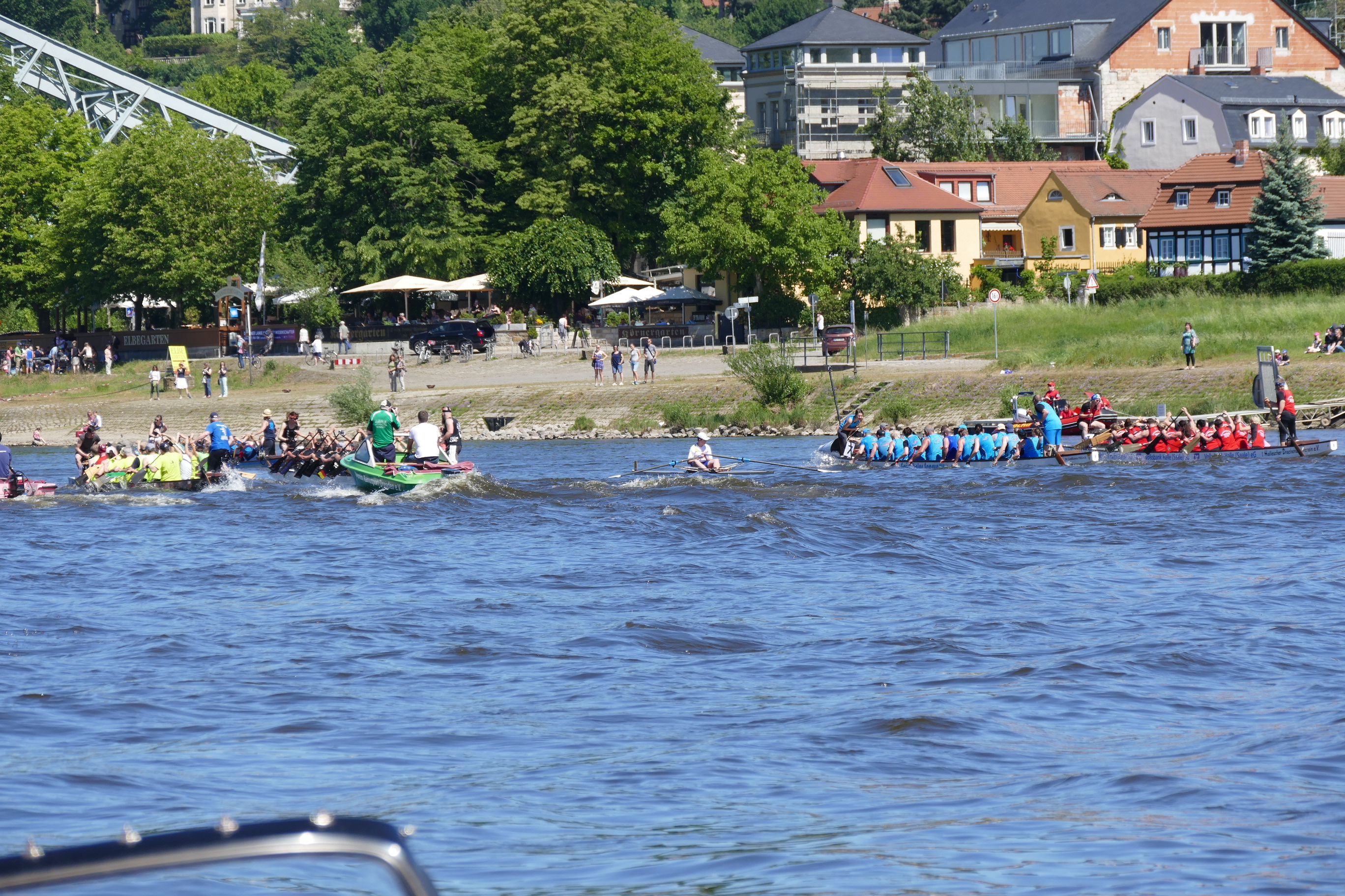 Heute fand die 128 Dresdner Ruderregatta statt. Der Wettergott meinte es sehr gut mit den Ruderinnen und Ruderern. Die Elbe hatte heute nur einen Wasserstand von 117 cm. Das war wie immer die erste Hürde für alle Beteiligten. Untiefen, Stau und Strudel galt es geschickt auszuweichen. Dass große Schiffe Wasser ziehen mussten leider einige schmerzlich mit Bootschaden bemerken.