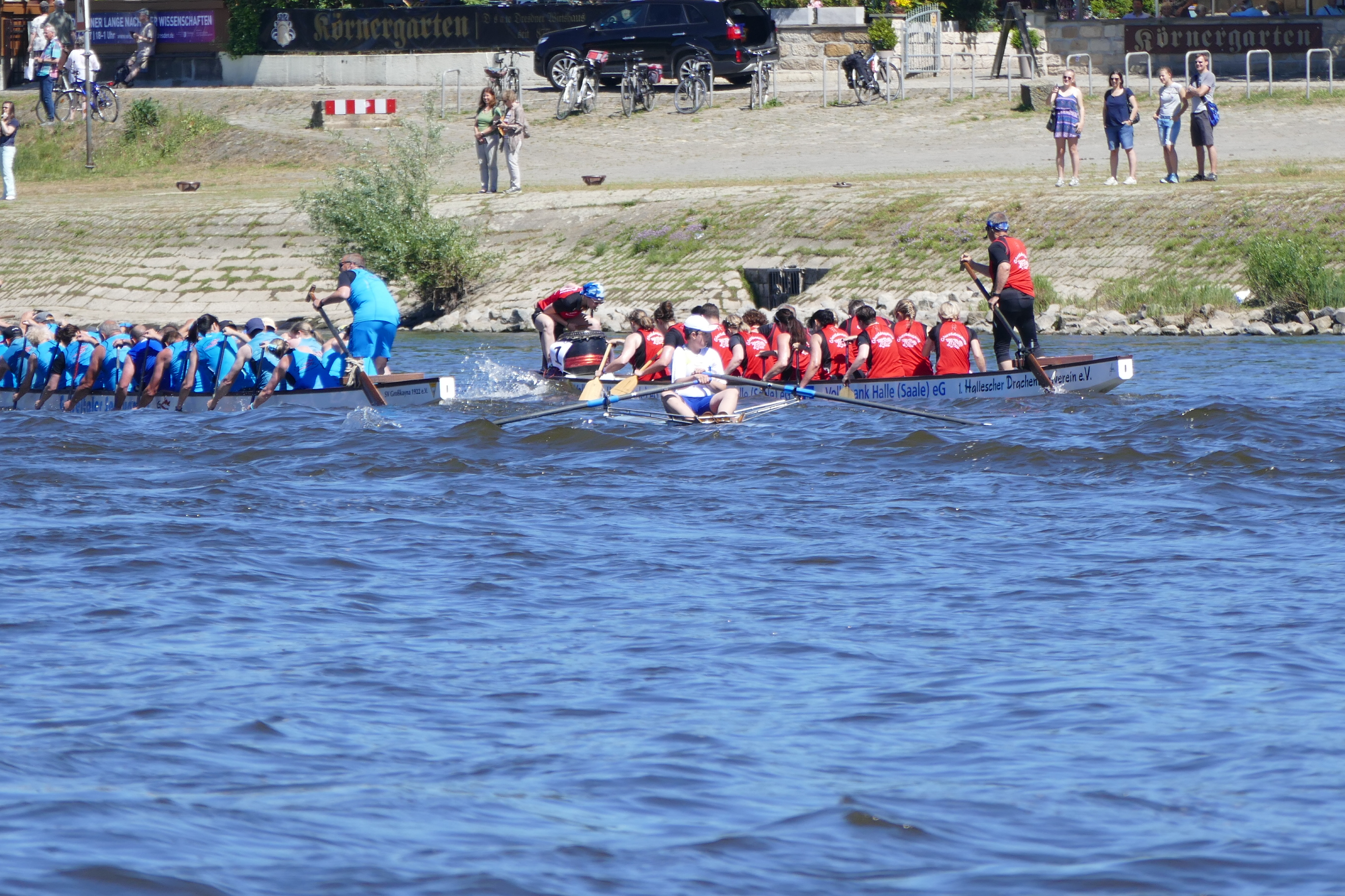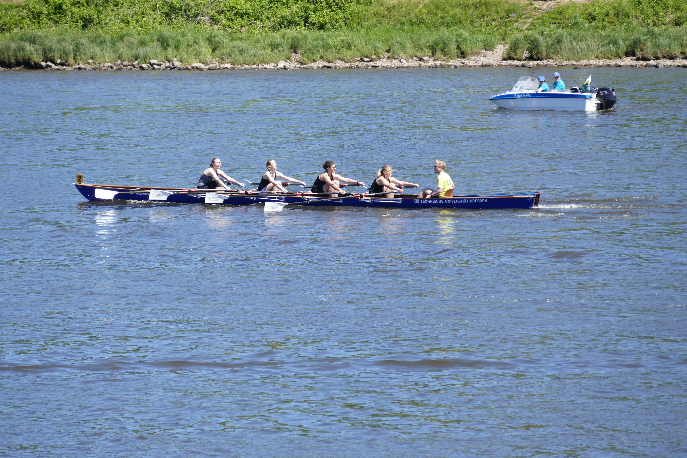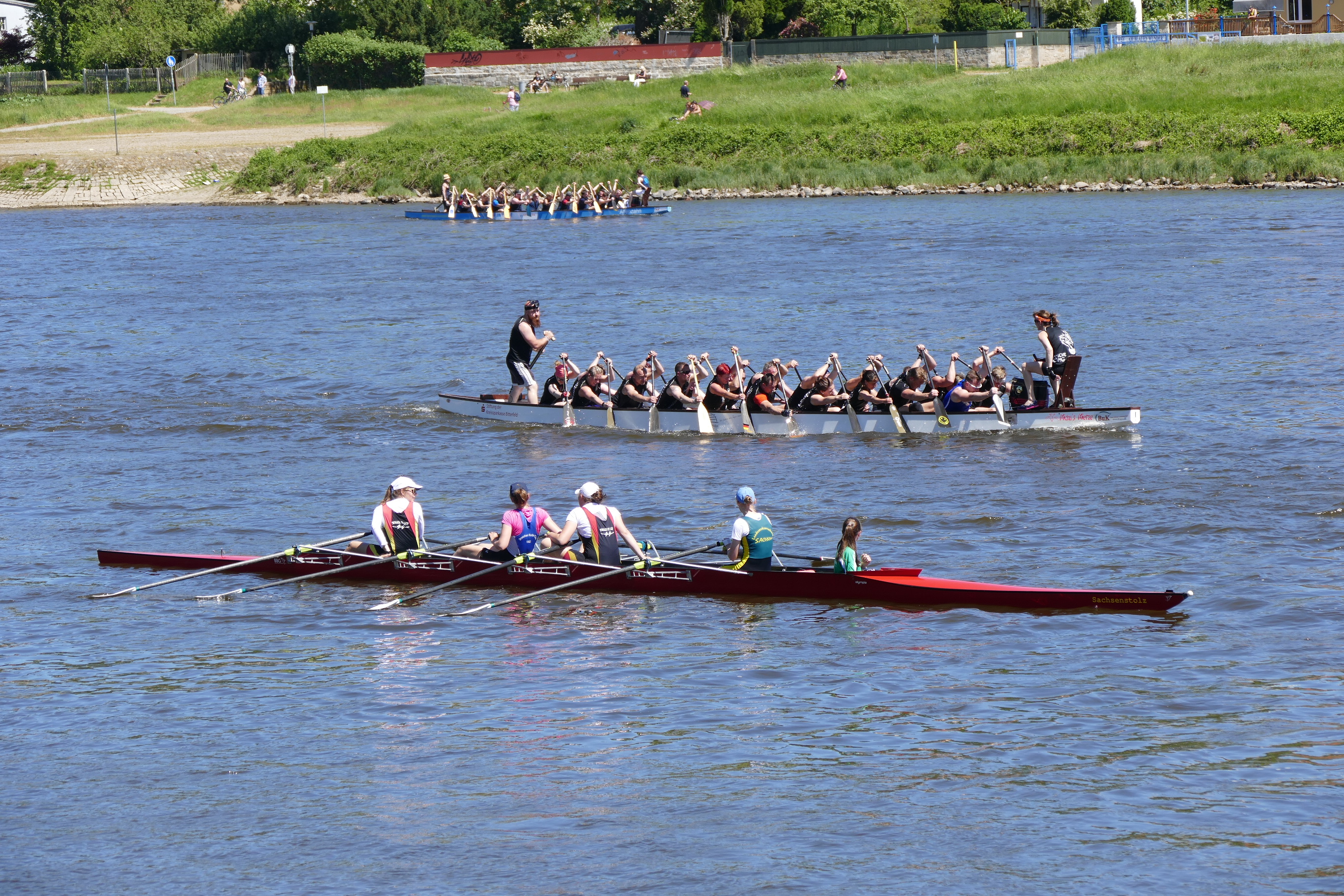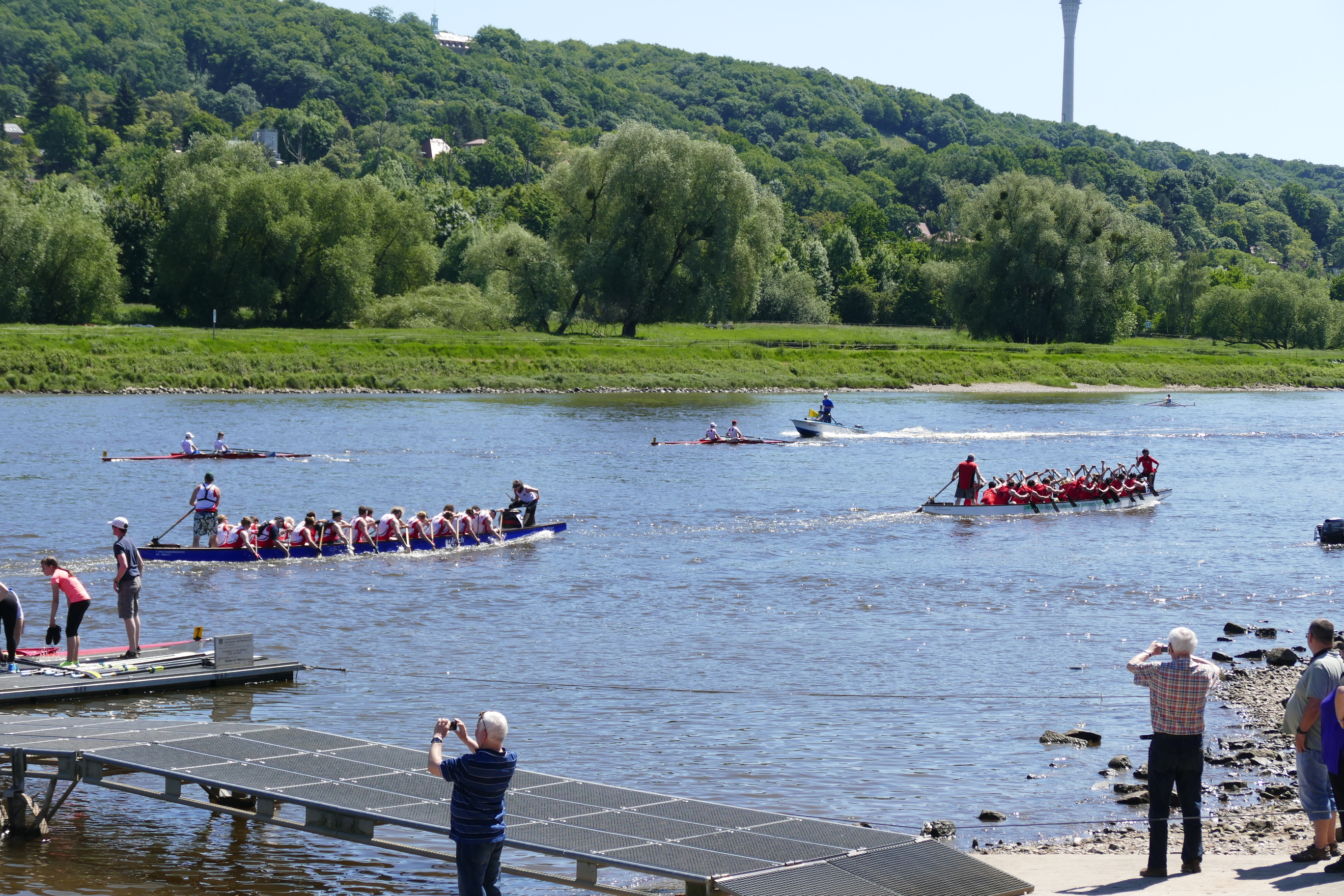 Heute fand die 128 Dresdner Ruderregatta statt. Der Wettergott meinte es sehr gut mit den Ruderinnen und Ruderern. Die Elbe hatte heute nur einen Wasserstand von 117 cm. Das war wie immer die erste Hürde für alle Beteiligten. Untiefen, Stau und Strudel galt es geschickt auszuweichen. Dass große Schiffe Wasser ziehen mussten leider einige schmerzlich mit Bootschaden bemerken.