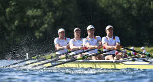 Im Junioren-Doppelvierer konnten sich über die Strecke drei Boote absetzten: Schweiz führte vor Deutschland und Dänemark. Auf dem letzten Streckenabschnitt griffen die Dänen stark an und zogen zunächst an den Deutschen vorbei. Doch Malte Engelbracht,