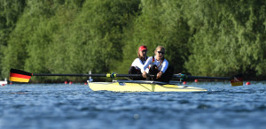 Katja Fuhrmann (Laubegast) und Marie-Sophie Zeidler das Boot des Deutschen Ruderverband. Auf dem letzten Streckenabschnitt mussten die Griechinnen ihrem hohen Anfangstempo Tribut zollen und wurden noch von den Rumäninnen überrudert. Der Bronze Rang ging aber sicher an die DRV-Kombination Fuhrman/Zeidler vor den Gegnerinnen aus Litauen.