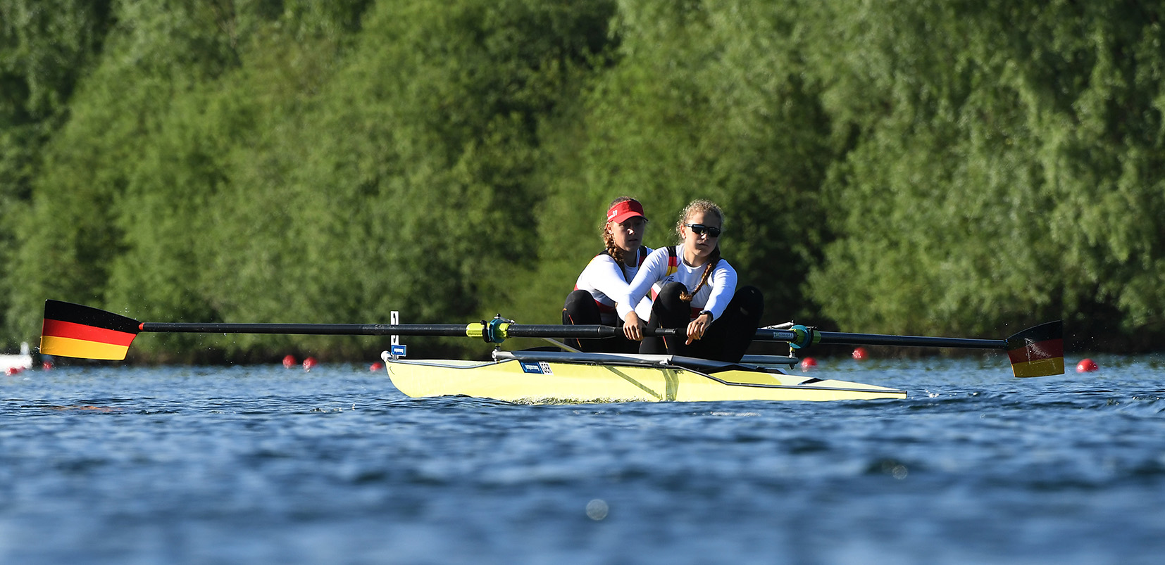 Im Juniorinnen-Zweier suchte das griechische Team die Flucht nach vorne und legte sich zu Beginn deutlich in Front. Am besten konnte ihnen das Boot aus Rumänien folgen. Doch kurz dahinter lag mit