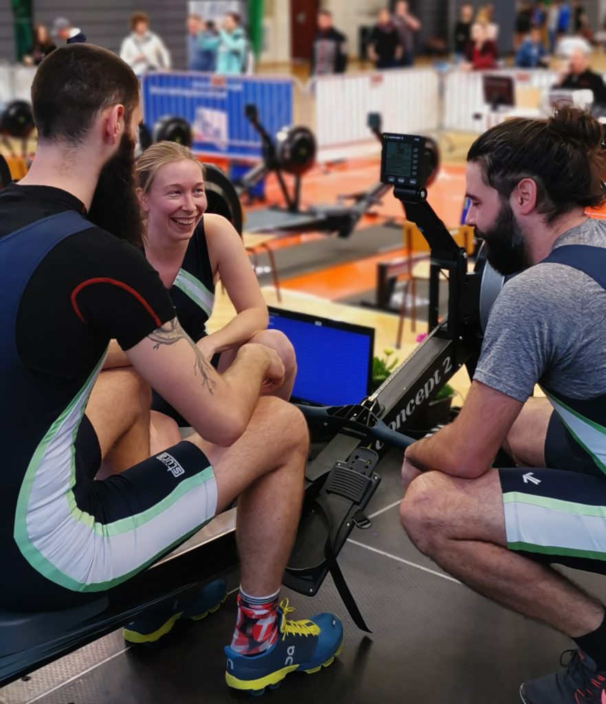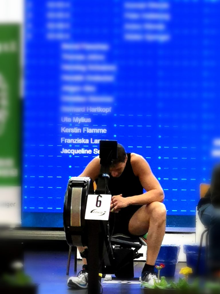 Auch wenn Boris Orlowski in der Moderation öfter davor gewarnt hat, konnte man immer wieder die „Fly and Die Taktik“ auf dem Ergometer beobachten: Aimee Schellenberg (USV TU Dresden) startete bei den Juniorinnen B Leichtgewichten mit einer 1:57 min und trudelt mit 2:10 min trotzdem noch als erste ins Ziel. Auch Carlotta Rommel (Mündener Ruderverein) erwischte der Mann mit dem Hammer. Im Frauen Einer A startete sie mit 1:49,7 min und fuhr auf den letzten 500m eine 2:03,1 min. Die Siegerin Violetta Müller (Uni Kassel) war auf den letzten 500m 13 Sekunden schneller. Wir hoffen, dass sich alle gut von den Strapazen erholt haben und sich beim nächsten Mal vielleicht ein bisschen von Hannah Grimm abschauen.