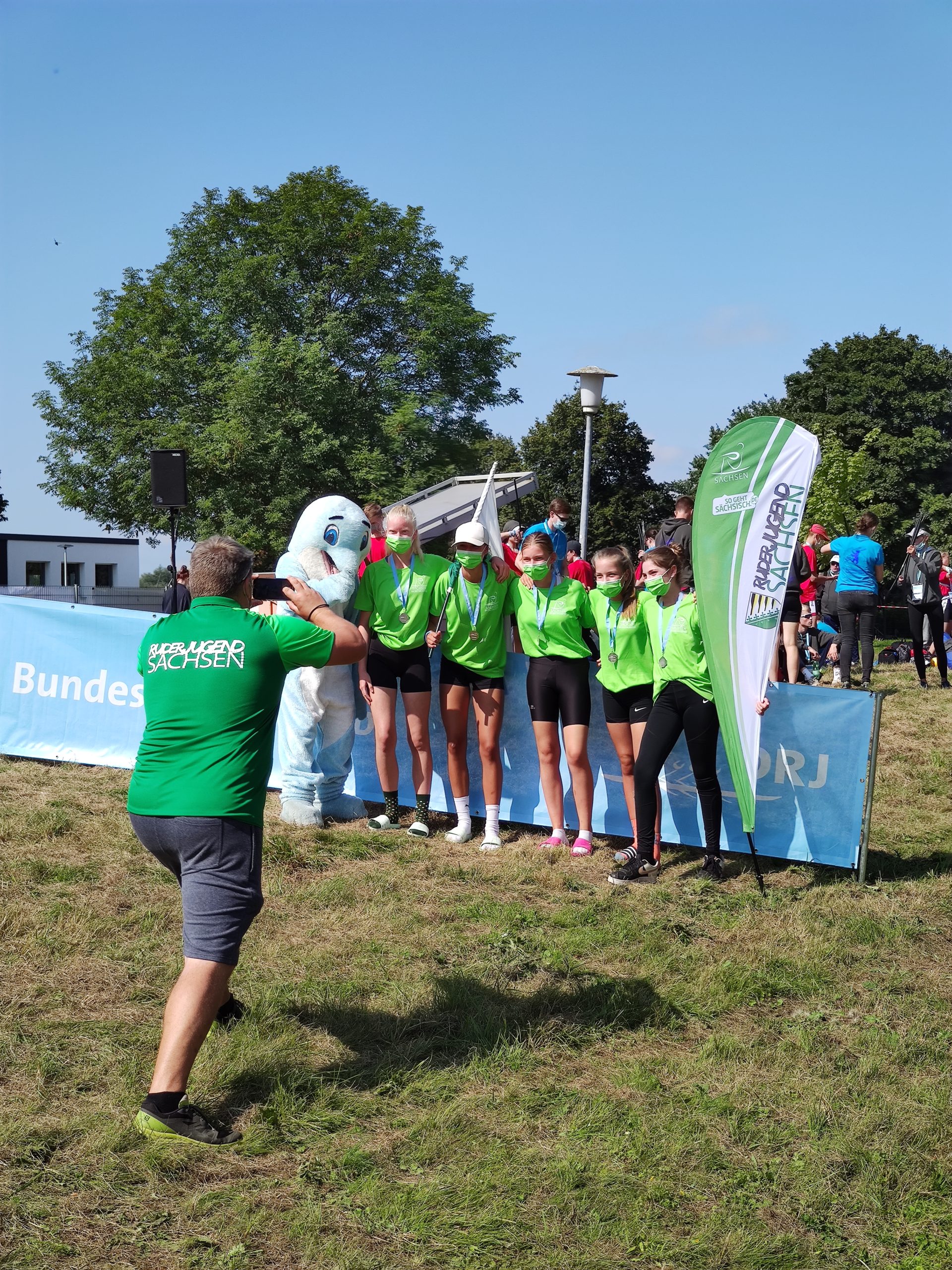 Richtig spannend wurde es am Sonntag bei der Bundesregatta über 1.000 m. Da offiziell keine Zuschauer zugelassen waren, haben sich die Kinder gegenseitig laut und energisch angefeuert. Und immer wieder sah man das leuchtende Grün des Team Sachsen über das Wasser fliegen. Über die Normalstrecke holten die Mädchen und Jungen zweimal Gold und dreimal Silber in ihren Abteilungen.