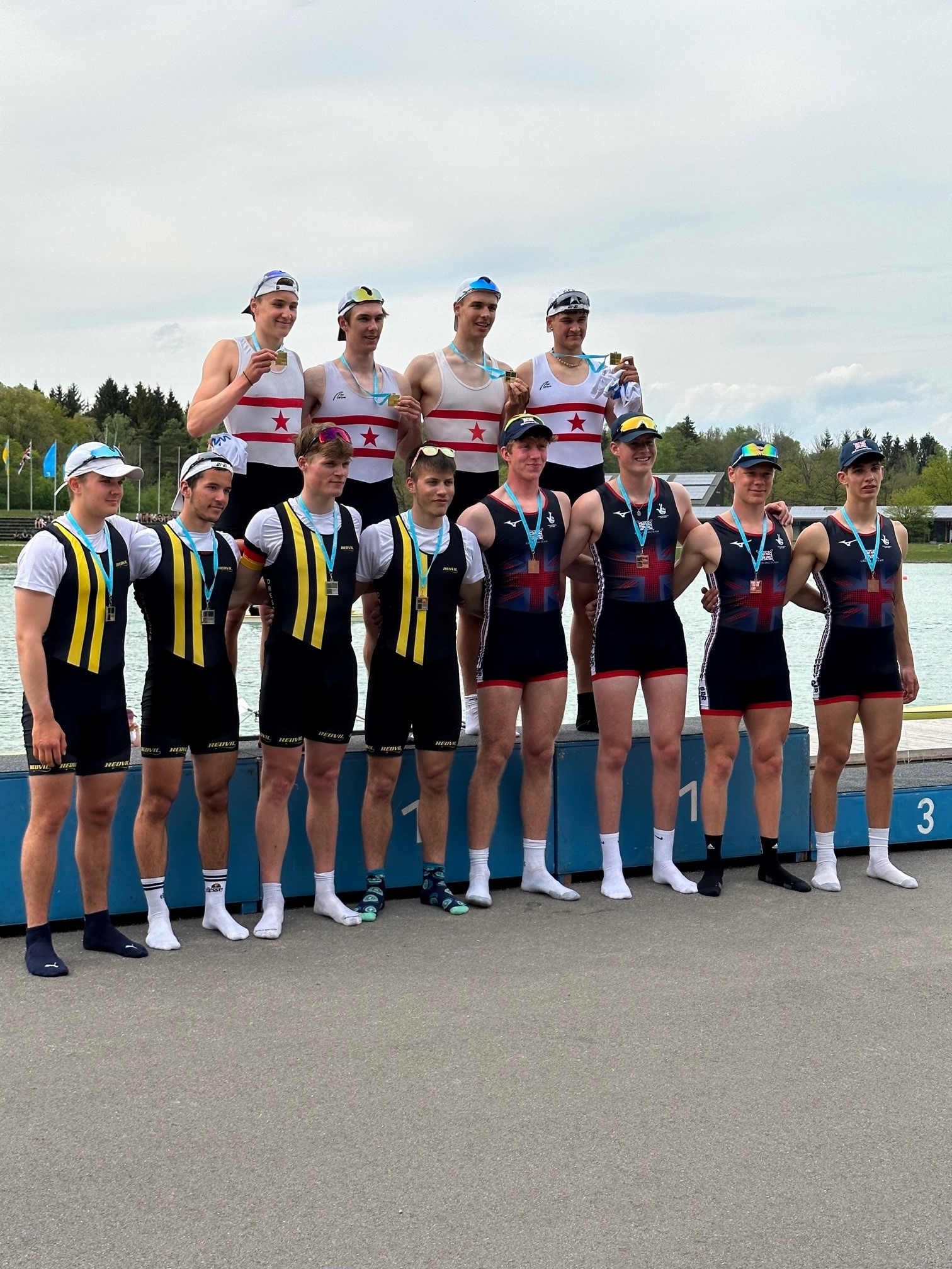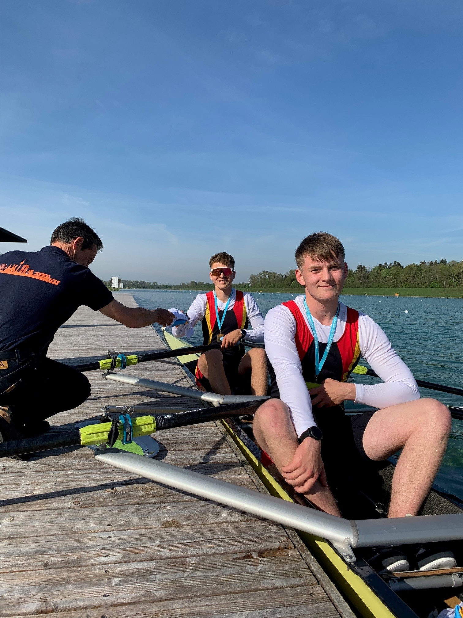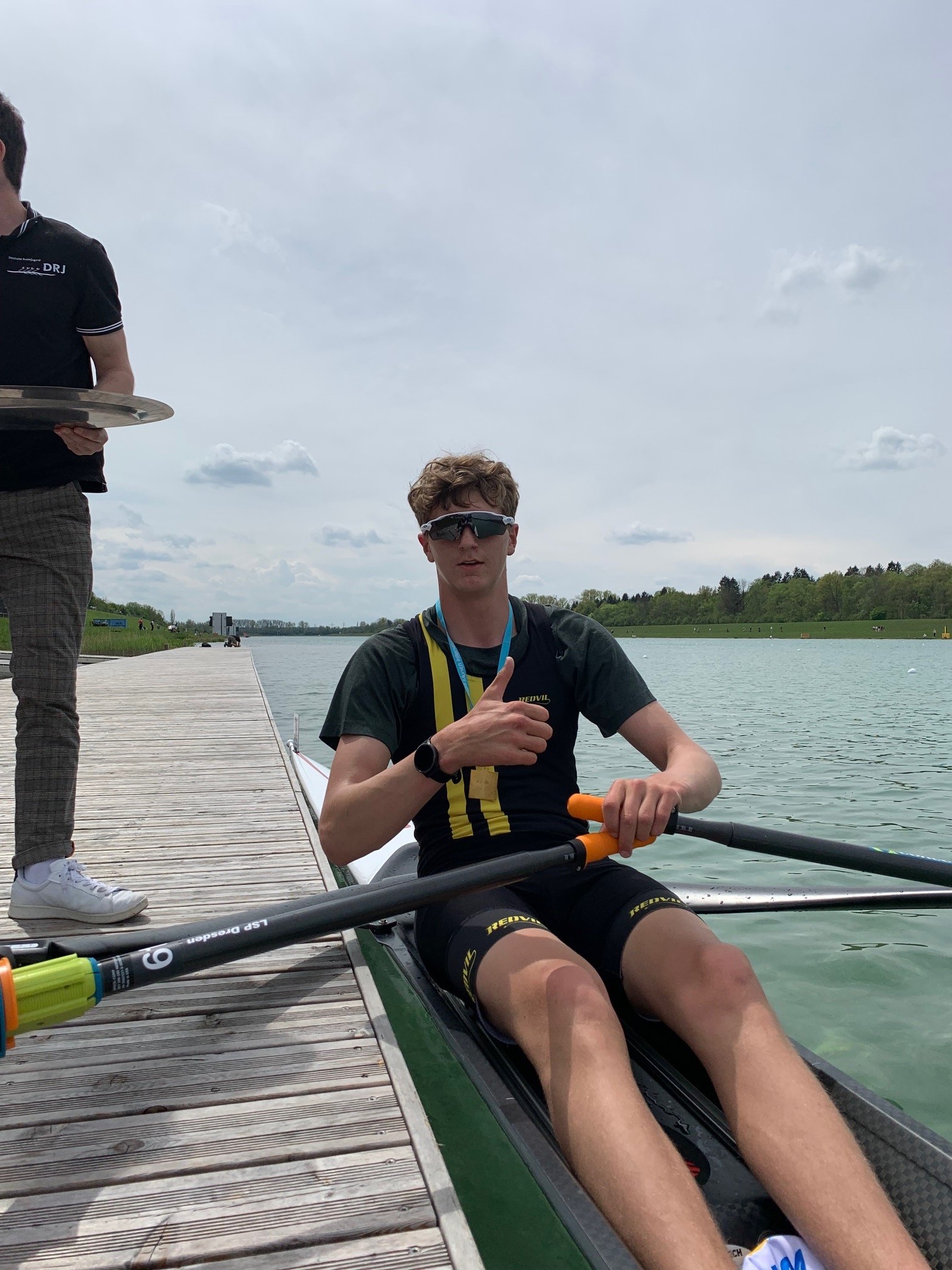 Auch am Sonntag begann der Tag mit Vorläufen. Dieses Mal allerdings in den Großbooten. Tom Olbrich, Lino Zastrow und Franz Rudolph saßen im Achter und Cornelius Conrad im Doppelvierer. Beide Boote waren am Nachmittag im A-Finale, wobei der Doppelvierer den 2. Platz und der Achter den 6. Platz machte. Zudem steuerte Emma Mehner den Juniorinnen-A Achter auf den ersten Platz und holte sich damit eine Goldmedaille ab.
