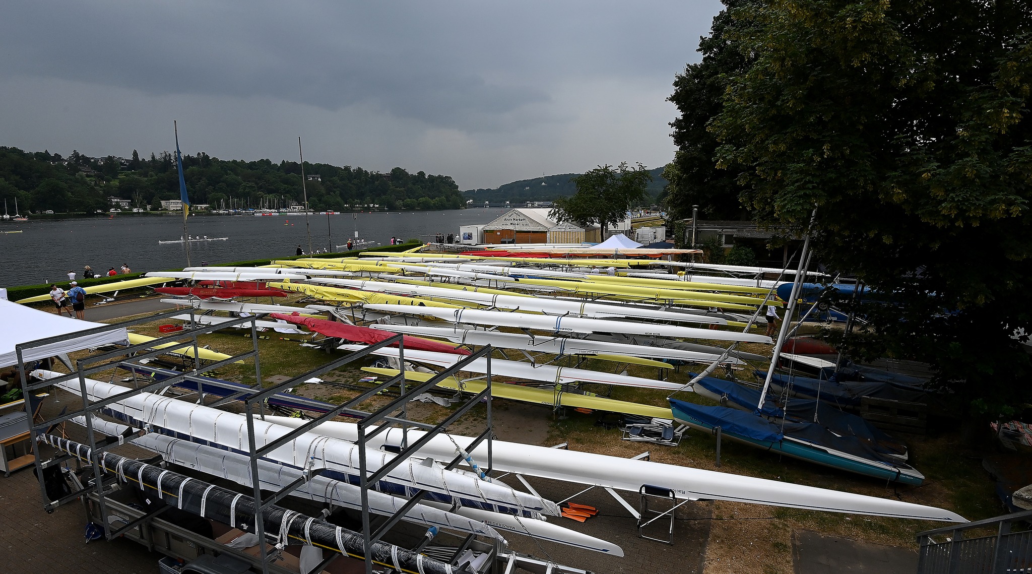 Am Donnerstag während der Vorläufe musste die Regatta wegen durchziehender Gewitter zunächst unterbrochen und dann sogar frühzeitig abgebrochen werden, denn Sicherheit geht immer vor. Andrè Ströttchen, der Regattaleiter, beschreibt die Situation am Donnerstag als schwierig und dennoch einfach zu entscheiden: „Das Thema ist uns am Mittwoch schon angekündigt worden, deswegen haben wir da schon Vorbereitungen dafür getroffen. Zum Beispiel wurden Teamleiter informiert und Evakuierungspläne nochmal angepasst. Man kann sich auf alles vorbereiten, gegen das Wetter ist man machtlos. Und wenn ich die Entscheidung zum Abbruch nochmal treffen müsste, würde ich das auch wieder so machen. Dazu muss man aber zwei Dinge wissen: es gibt eine Zeitrechnung vor dem großen Hochwasser an der Ahr und in NRW und es gibt eine Zeit danach. Ich glaube auch, dass man vor drei Jahren vermutlich noch anders entschieden hätte. Wir standen unter ziemlicher Beobachtung von Presse und Stadt.“