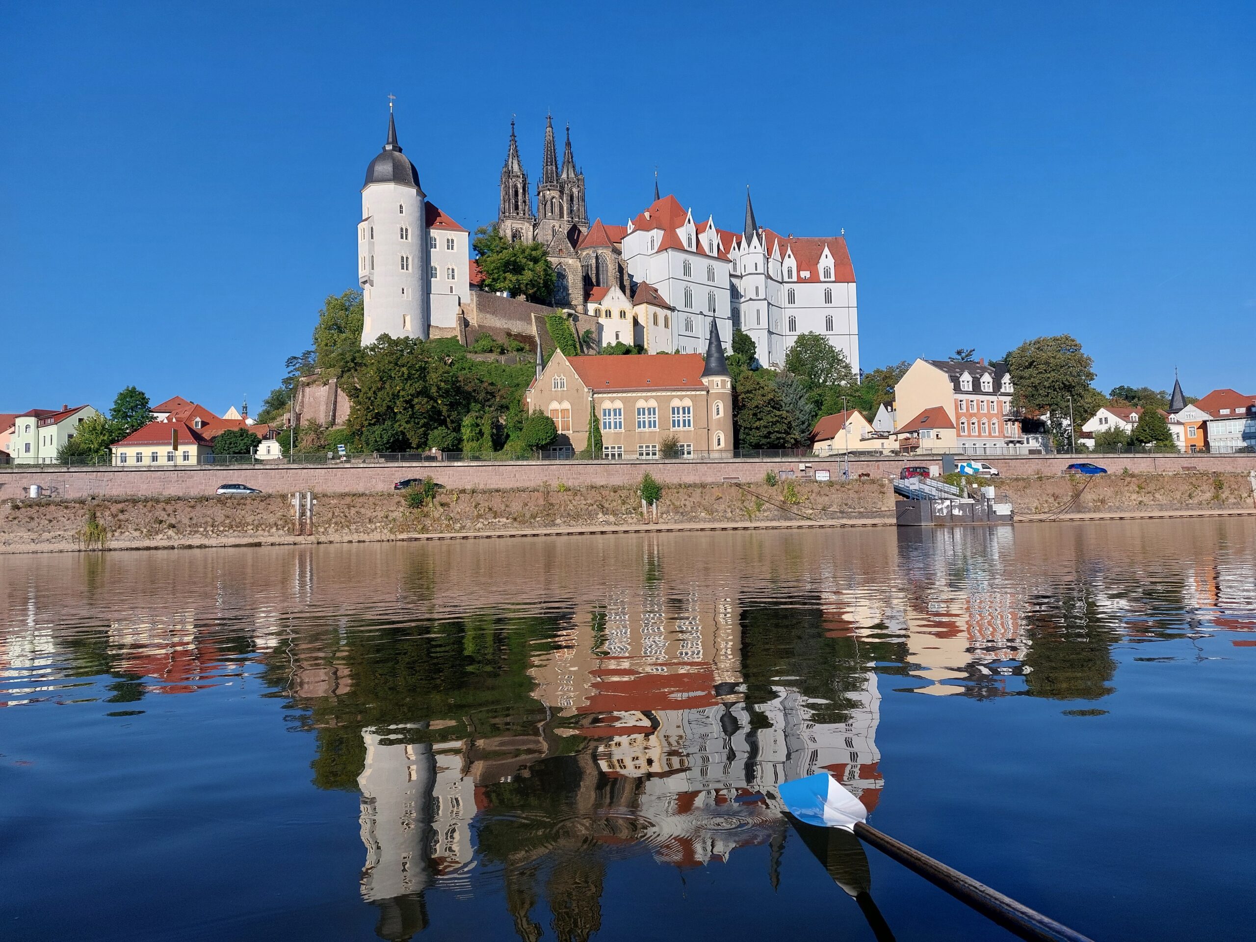 Schon am Abend vorher durften sich die früher angereisten Abenteurer durch die romantische Sonnenuntergangsstimmung am Meißner Marktplatz fachkundig von einem Mitglied des Dresdner Rudervereines geführt – verzaubern lassen.