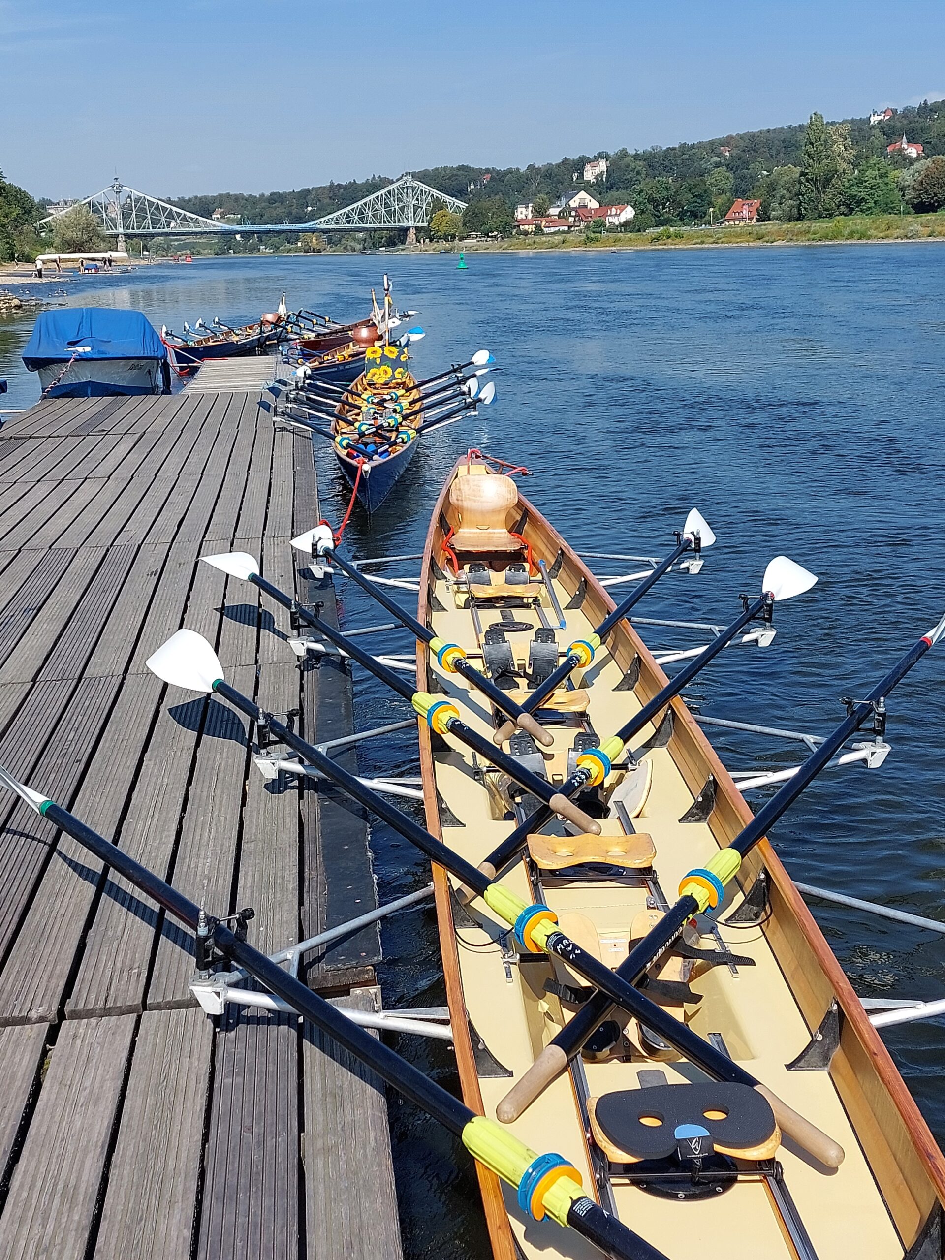 Deshalb ließ Neptun sich zwei Tage nicht blicken, als sechs Boote mit den Namen all unserer schönen Fließgewässer am Samstag (7.9.2024) in Pirna zu Wasser gelassen wurden: Donau, Main, Mosel, Oder, Weser (2x) und ein Zweier mit Steuermann mit dem Namen Rathen.