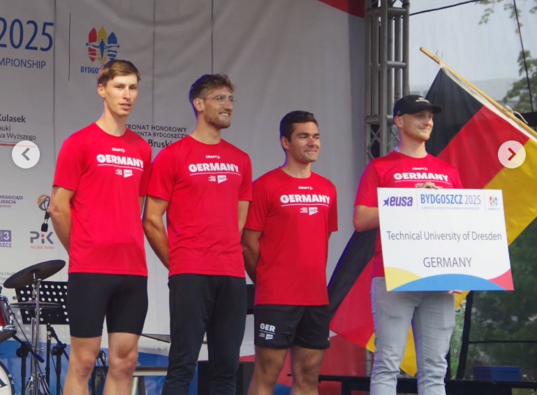 Der Männer-Doppelvierer der TU Dresden verpasste eine Medaille nur knapp. Um gerade einmal 0,79 Sekunden musste sich das Team mit Conrad Seeger (Laubegaster RV), Marten Erdmann, Ardavan Imankhan und Justus Herget (alle USV TU Dresden) im A-Finale im Kampf um die Medaillen geschlagen geben. Hinter der siegreichen Vytautas Magnus University aus Litauen entwickelte sich ein enges Rennen um die weiteren Podiumsplätze, bei dem Lorraine (FRA) und Bath (GBR) die Nase vorn hatten. Mit Rang vier bestätigte die Crew ihre starke Form, die sie bereits mit dem Titelgewinn bei der Deutschen Hochschulmeisterschaft im Juli in Krefeld gezeigt hatte. Die nächste Gelegenheit zum internationalen Vergleich wird sich 2026 in Zagreb (CRO) bieten.