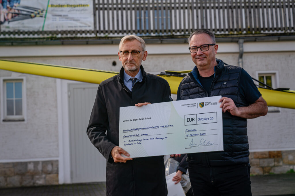 Landeshauptstadt Dresden, vertreten durch Sportbürgermeister Jan Donhauser, übergeben. Mit dieser Fördersumme unterstützt der Freistaat Sachsen die Instandsetzung, den Umbau und die Sanierung des Ruderhauses Cotta des Dresdner Ruderclub 1902 e. V.